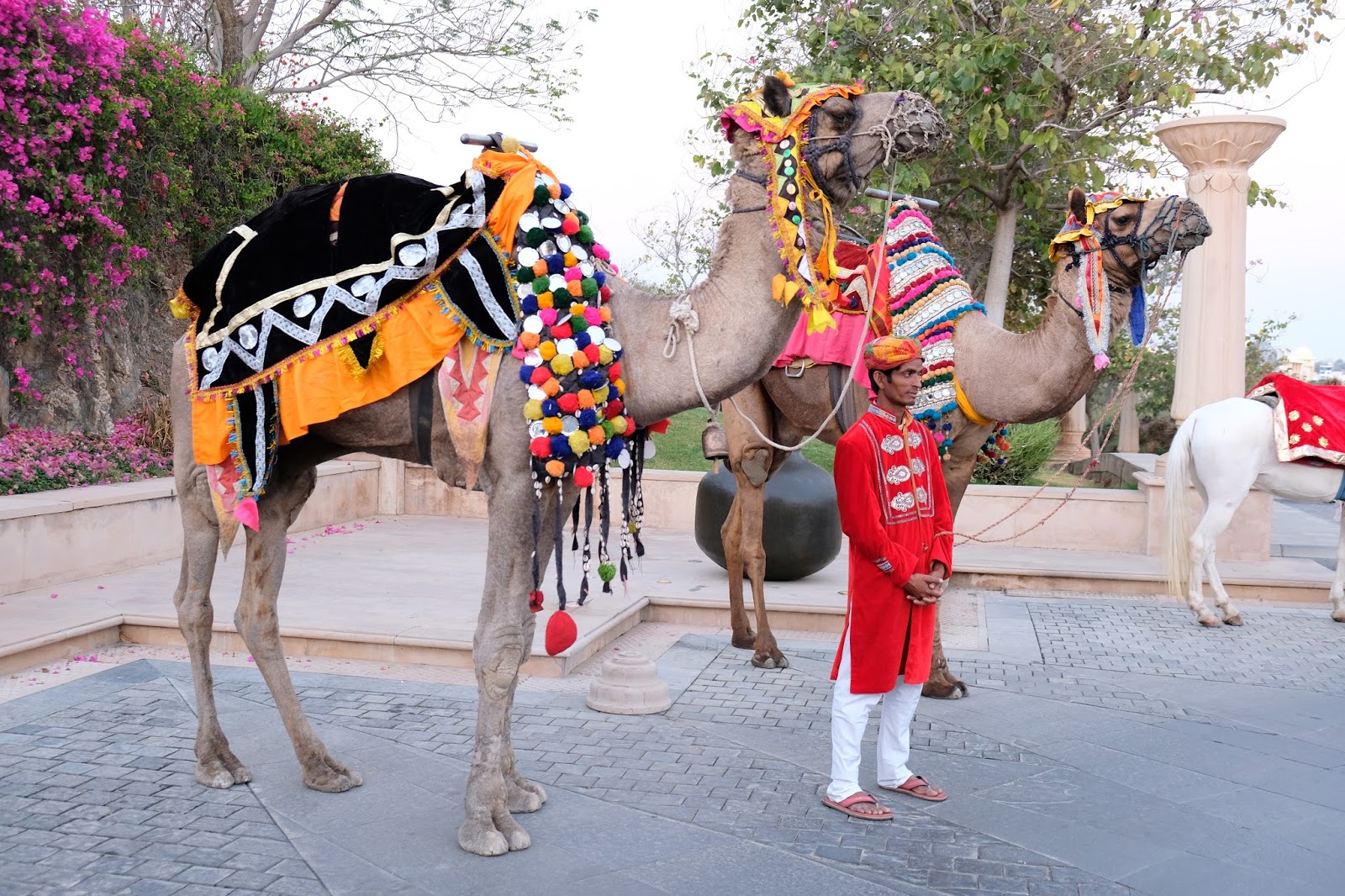 | Majestically decorated camels |
